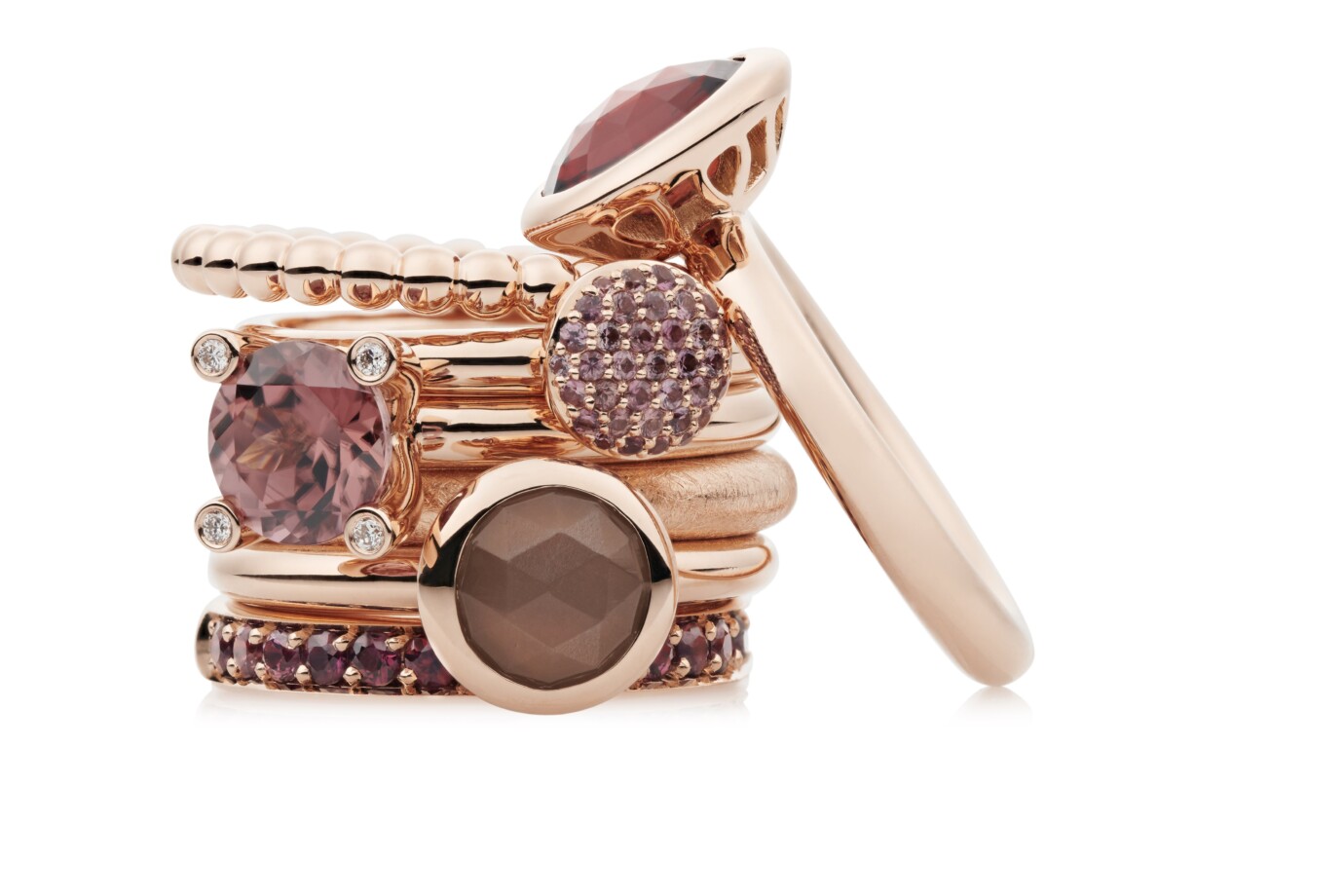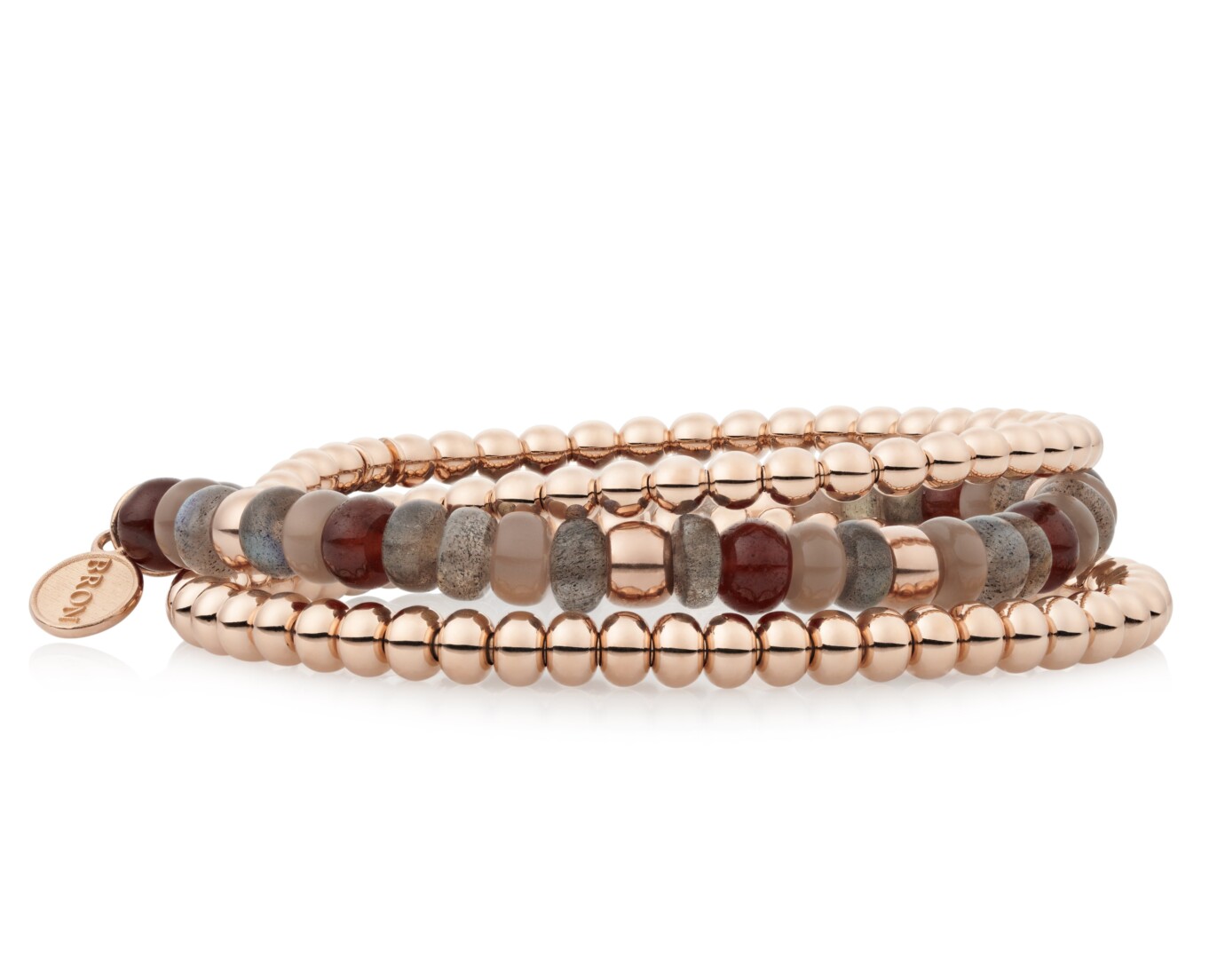 Met de nieuwe granaat kleuren in combinatie met beryl en Labradoriet maakt Bron een warme maar toch sprekende collectie sieraden.