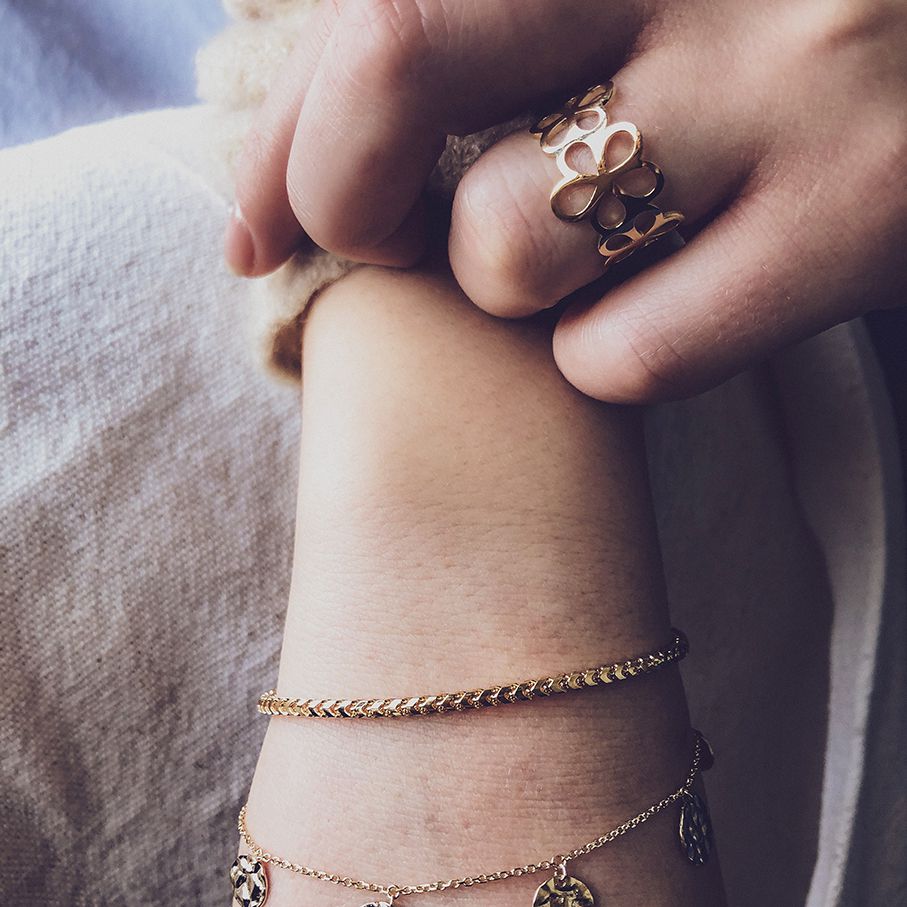 mooie geelgouden ring met een opengewerkt bloemmotief