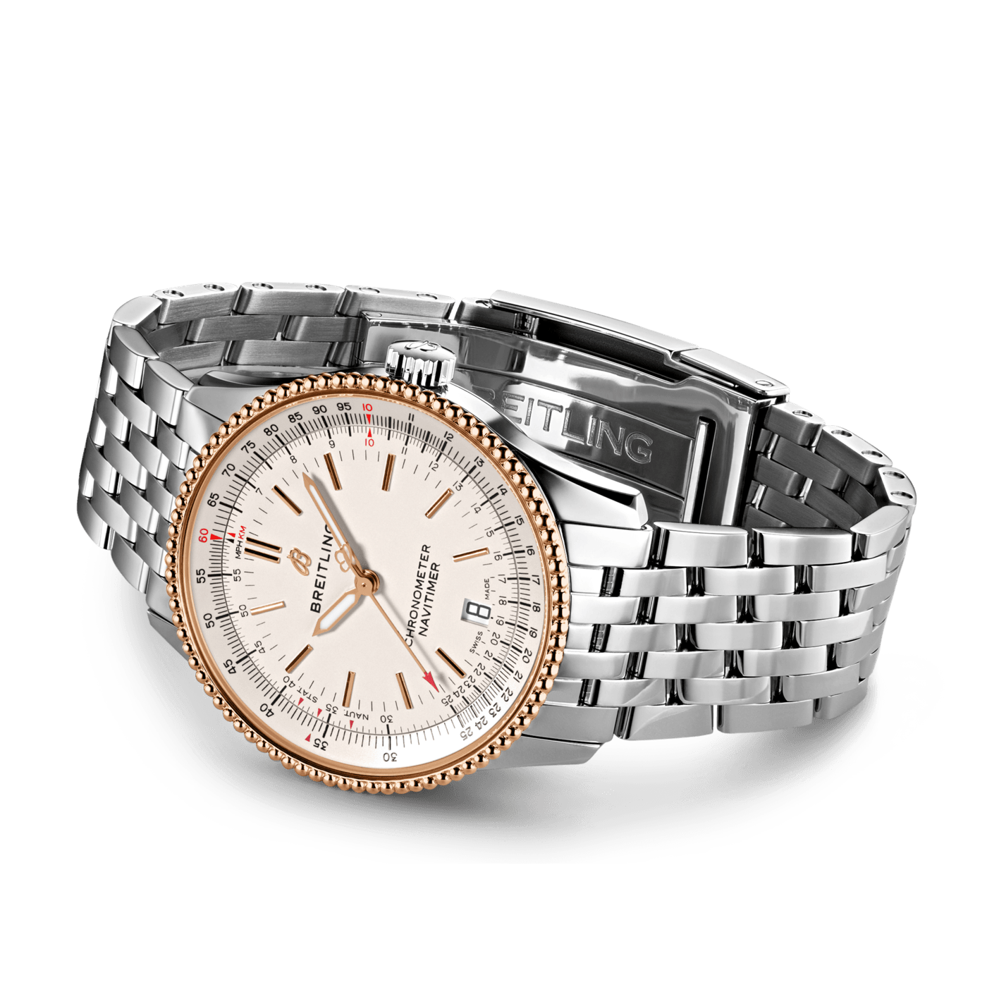 De Breitling Navitimer Automatic 38 U17325211G1A1 is verfijnd en elegant, de Navitimer Automatic 38 combineert de historische aantrekkingskracht van een waar icoon met de verfijning van een eigentijds uurwerk. Verkrijgbaar in verschillende materialen, waaronder roestvrij staal en 18k rood goud, de 38 mm kast heeft een bezel met parelrand en een reeks elegante zwarte, blauwe of zilveren wijzerplaten. De Navitimer Automatic 38 wordt aangeboden met een bijpassende stalen band, of een zwarte, blauwe of gouden krokodillenband die zowel op een roestvrijstalen gesp als op een vouwsluiting past, en wordt aangedreven door de Breitling Calibre 17, een COSC-gecertificeerde chronometer. Breitling Instruments for Professionals!