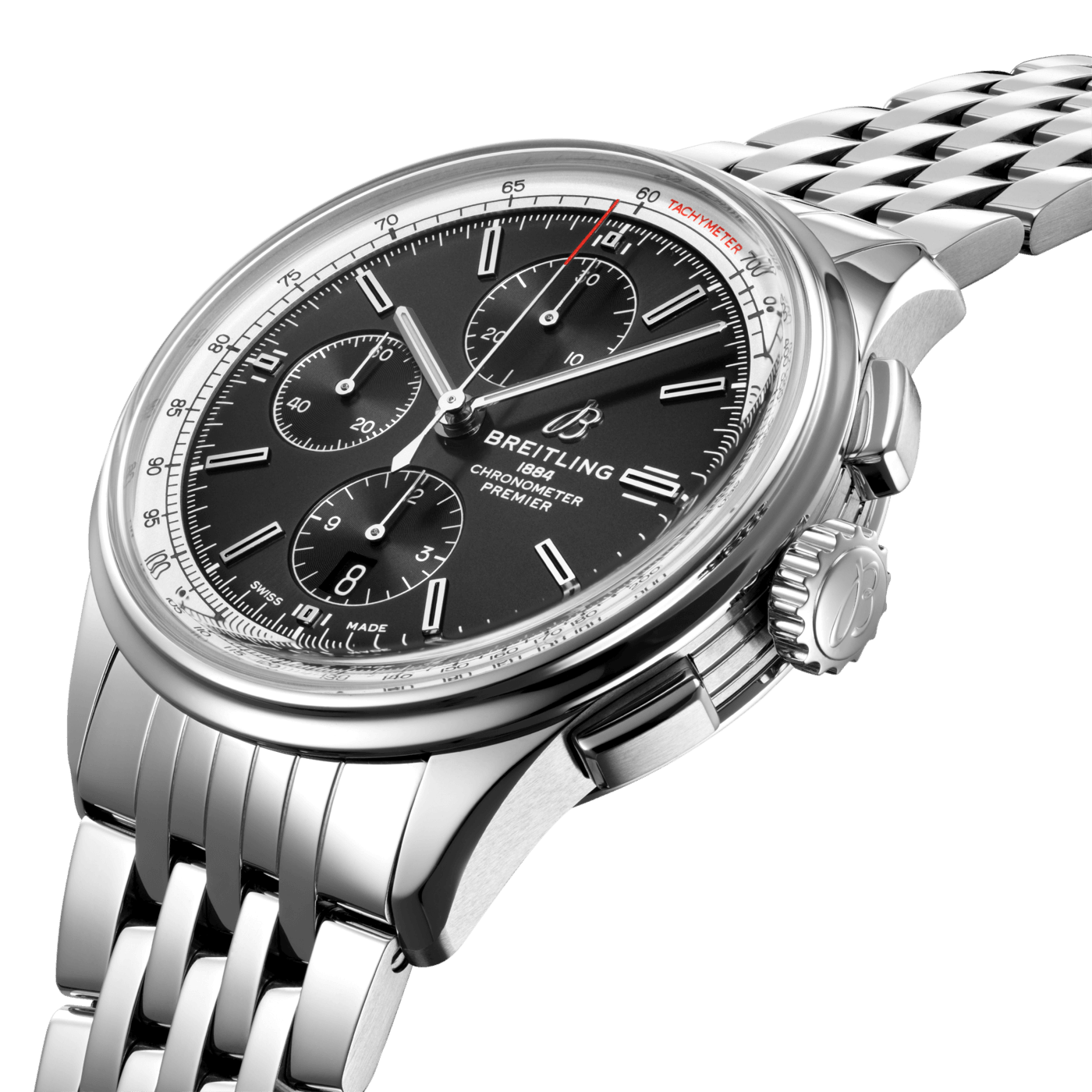 De Breitling Premier Chronograph 42 A13315351B1A1 is ontworpen door Willy Breitling in de jaren 40, was de Premier het allereerste horloge van het merk dat gewijd was aan stijl. Met elegante details en modern-retro accenten, voldoet deze herinterpretatie van de Premier aan de reputatie van zijn voorouders: het is “een horloge met een onberispelijke smaak”. De Premier toont een verscheidenheid aan elegante ontwerpdetails, zoals de groeven aan de zijkant van de kast of de rechthoekige chronograafdrukkers. De Premier Chronograph 42 is verkrijgbaar in roestvrij staal en heeft een zwarte of blauwe wijzerplaat. Deze Premier wordt aangeboden met een bijpassende stalen band of een keuze uit een band van krokodillenleer of nubuck kalfsleer die past bij zowel een gespsluiting als een vouwsluiting en wordt aangedreven door de Breitling Calibre 13, een COSC-gecertificeerde chronometer. Breitling Instruments for Professionals!
