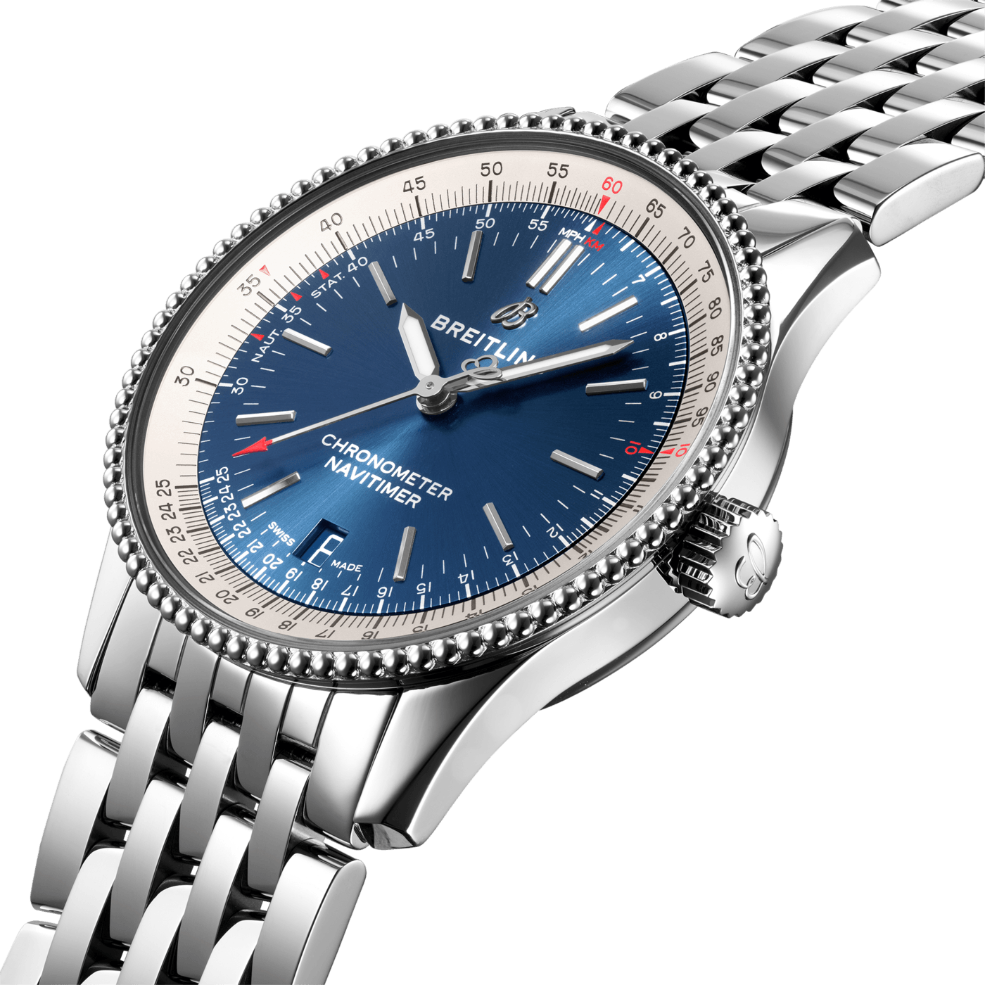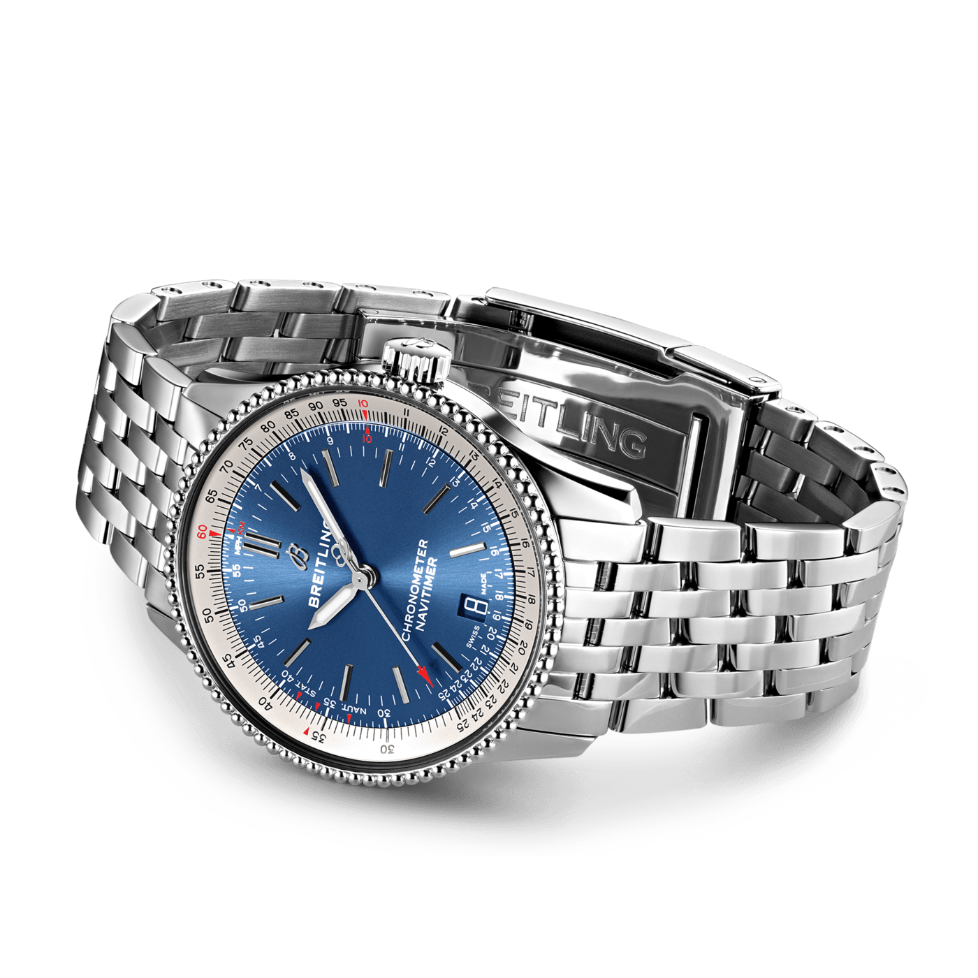 De Breitling Navitimer Automatic 38 A17325211C1A1 is verfijnd en elegant, de Navitimer Automatic 38 combineert de historische aantrekkingskracht van een waar icoon met de verfijning van een eigentijds uurwerk. Verkrijgbaar in verschillende materialen, waaronder roestvrij staal en 18k rood goud, de 38 mm kast heeft een bezel met parelrand en een reeks elegante zwarte, blauwe of zilveren wijzerplaten. De Navitimer Automatic 38 wordt aangeboden met een bijpassende stalen band, of een zwarte, blauwe of gouden krokodillenband die zowel op een roestvrijstalen gesp als op een vouwsluiting past, en wordt aangedreven door de Breitling Calibre 17, een COSC-gecertificeerde chronometer. Breitling Instruments for Professionals!