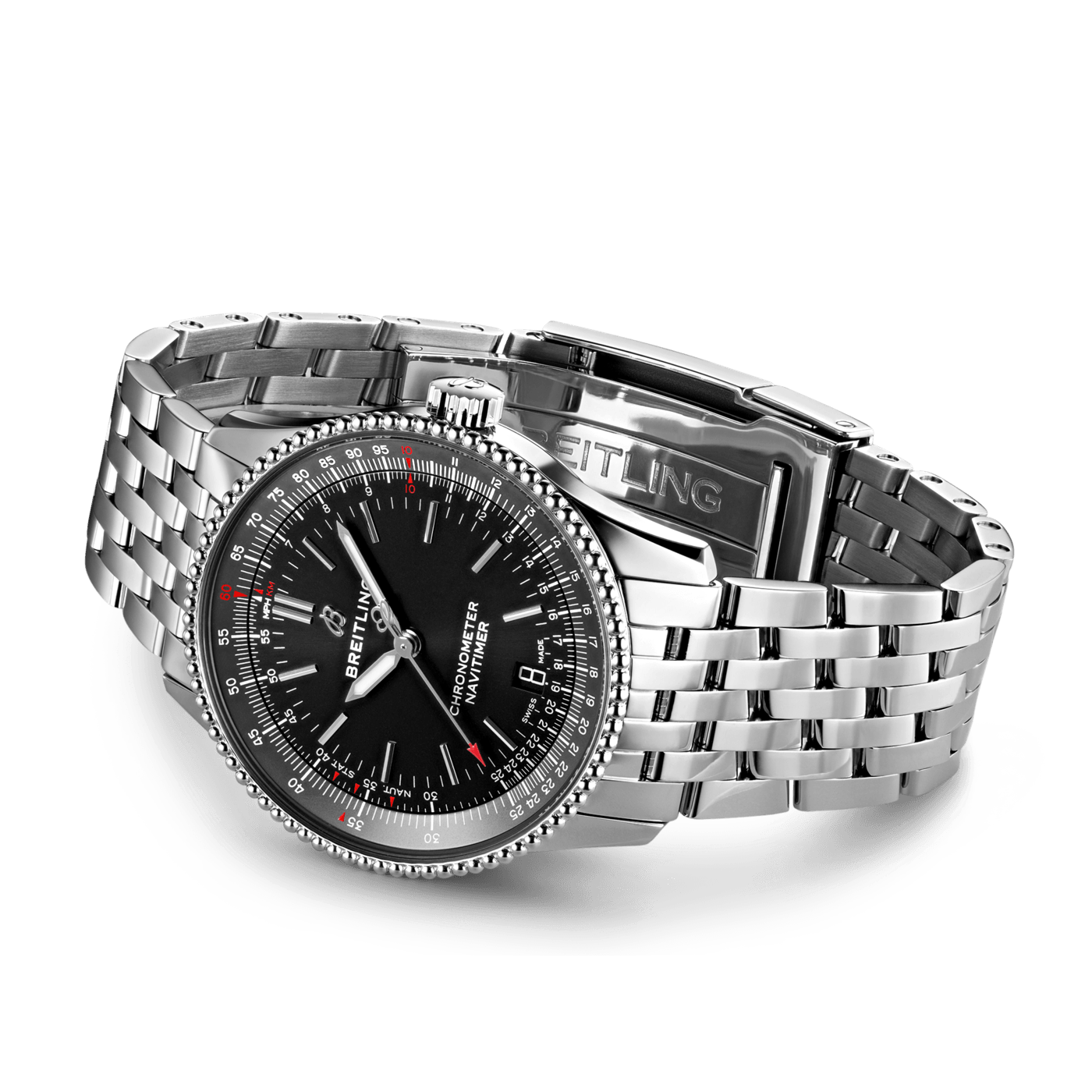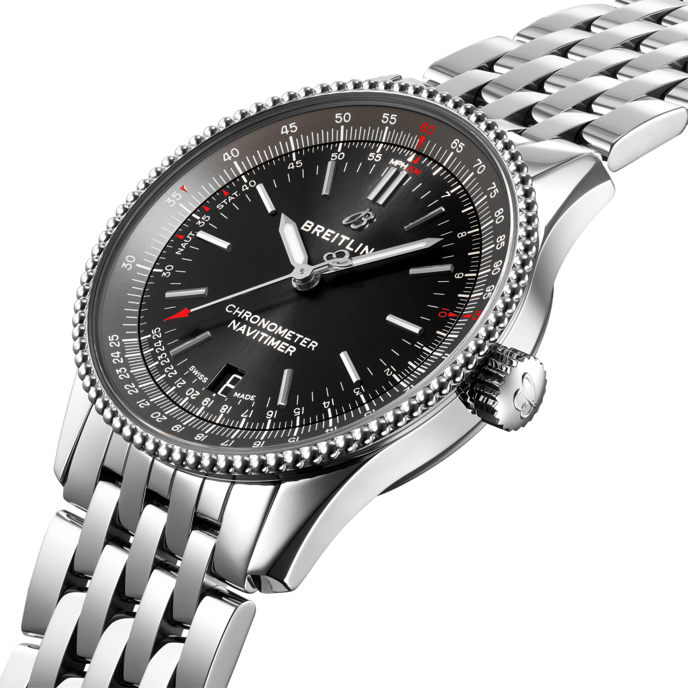 De Breitling Navitimer Automatic 38 A17325241B1A1 is verfijnd en elegant, de Navitimer Automatic 38 combineert de historische aantrekkingskracht van een waar icoon met de verfijning van een eigentijds uurwerk. Verkrijgbaar in verschillende materialen, waaronder roestvrij staal en 18k rood goud, de 38 mm kast heeft een bezel met parelrand en een reeks elegante zwarte, blauwe of zilveren wijzerplaten. De Navitimer Automatic 38 wordt aangeboden met een bijpassende stalen band, of een zwarte, blauwe of gouden krokodillenband die zowel op een roestvrijstalen gesp als op een vouwsluiting past, en wordt aangedreven door de Breitling Calibre 17, een COSC-gecertificeerde chronometer. Breitling Instruments for Professionals!