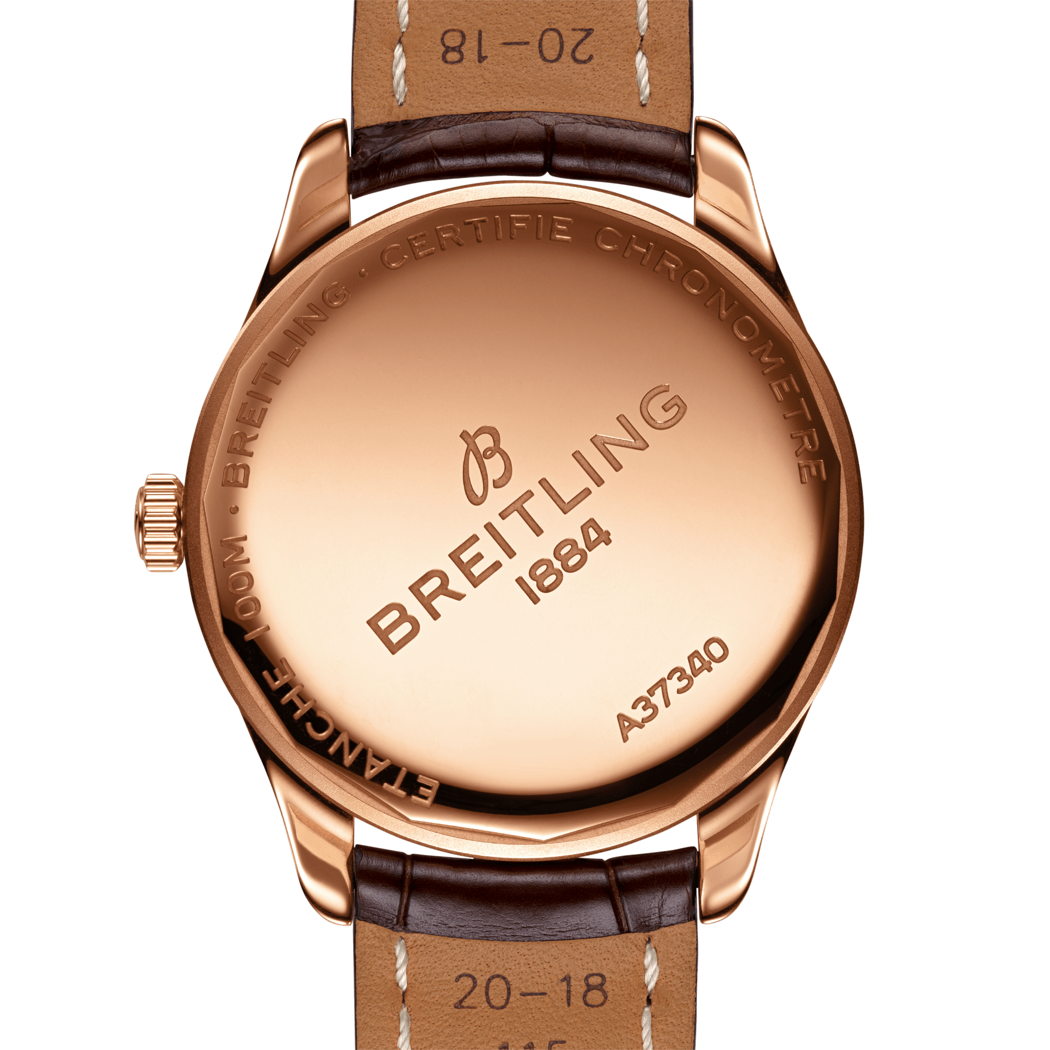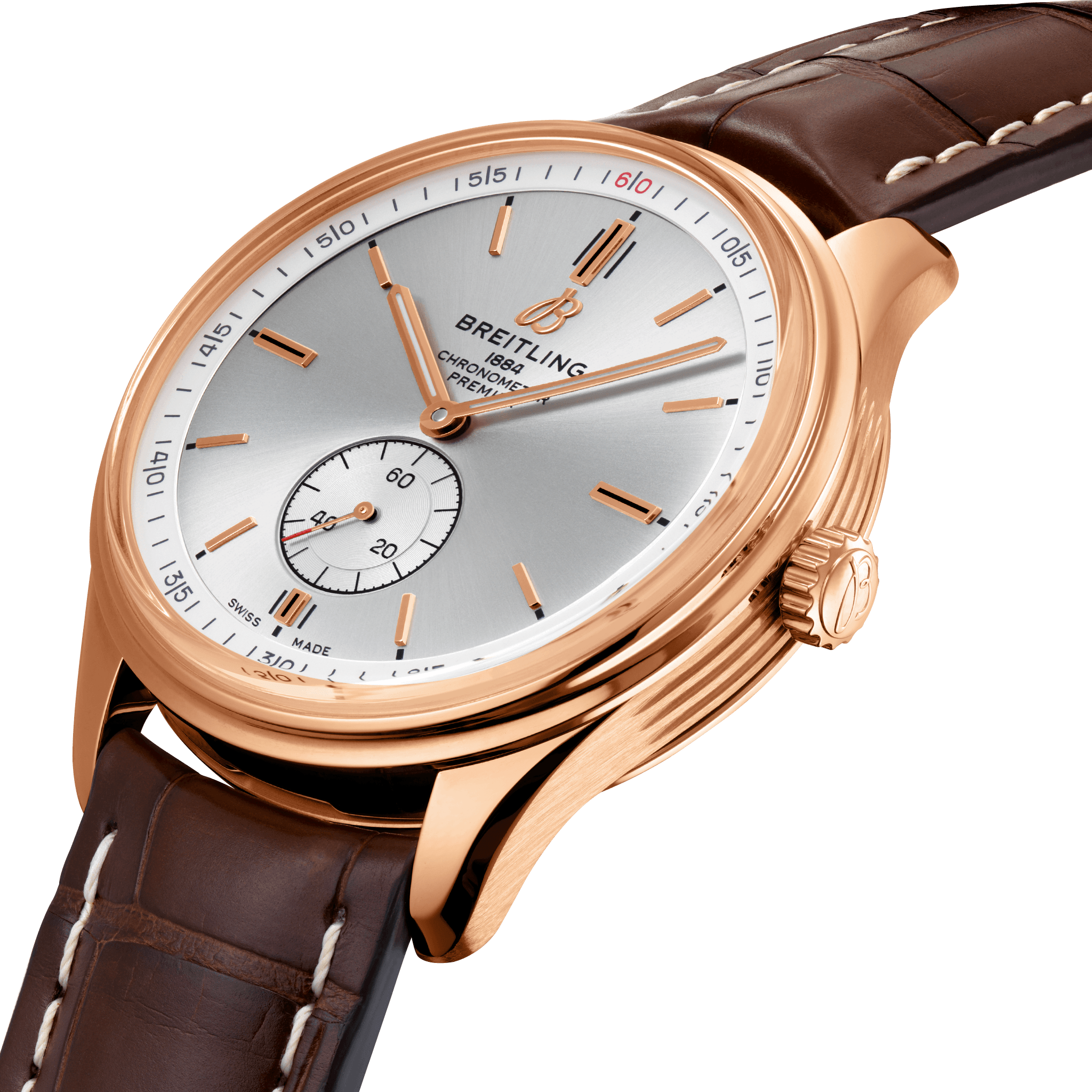 De Breitling Premier Automatic 40 R37340351G1P1 is ontworpen door Willy Breitling in de jaren 40, was de Premier het allereerste horloge van het merk dat gewijd was aan stijl. Met elegante details en modern-retro accenten, voldoet deze herinterpretatie van de Premier aan de reputatie van zijn voorouders: het is “een horloge met een onberispelijke smaak”. De Premier toont een verscheidenheid aan elegante ontwerpdetails, zoals de groeven aan de zijkant van de kast. De Premier Automatic 40 is verkrijgbaar in roestvrij staal en heeft een zwarte of zilveren wijzerplaat. Deze Premier wordt aangeboden met een bijpassende stalen band, of een keuze uit een band van krokodillenleer of nubuck kalfsleer die zowel aan een gespsluiting als een vouwsluiting past, en wordt aangedreven door de Breitling Calibre 45, een COSC-gecertificeerde chronometer. Breitling Instruments for Professionals!