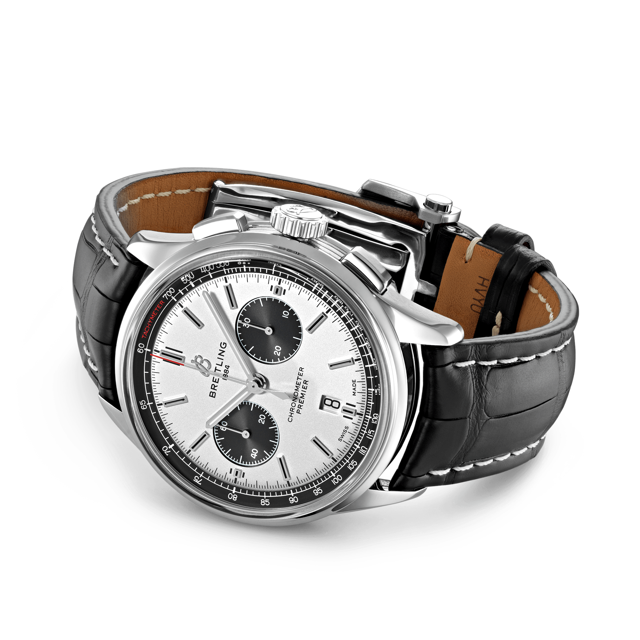De Breitling Premier B01 Chronograph 42 AB0118221G1P2 is ontworpen door Willy Breitling in de jaren 40, was de Premier het allereerste horloge van het merk dat gewijd was aan stijl. Met elegante details en modern-retro accenten, voldoet deze herinterpretatie van de Premier aan de reputatie van zijn voorvader: het is “een horloge met een onberispelijke smaak”. Met rechthoekige chronograaf pushers, evenals een bi-compax chronograaf panda-look, toont de Premier een verscheidenheid aan elegante ontwerpdetails, zoals de groeven aan de zijkant van de kast of de open saffieren achterkant van de kast. Verkrijgbaar in een verscheidenheid aan materialen, waaronder roestvrij staal of 18 k rood goud, de Premier B01 Chronograph 42 heeft een reeks zwarte, antraciet, zilveren of blauwe wijzerplaten. Deze Premier wordt aangeboden met een bijpassende stalen band, of een band van krokodillenleer of nubuck kalfsleer die zowel aan een gesp als een vouwsluiting past, en wordt aangedreven door de in-house Breitling Manufacture Calibre 01, een COSC-gecertificeerde chronometer. Breitling Instruments for Professionals!