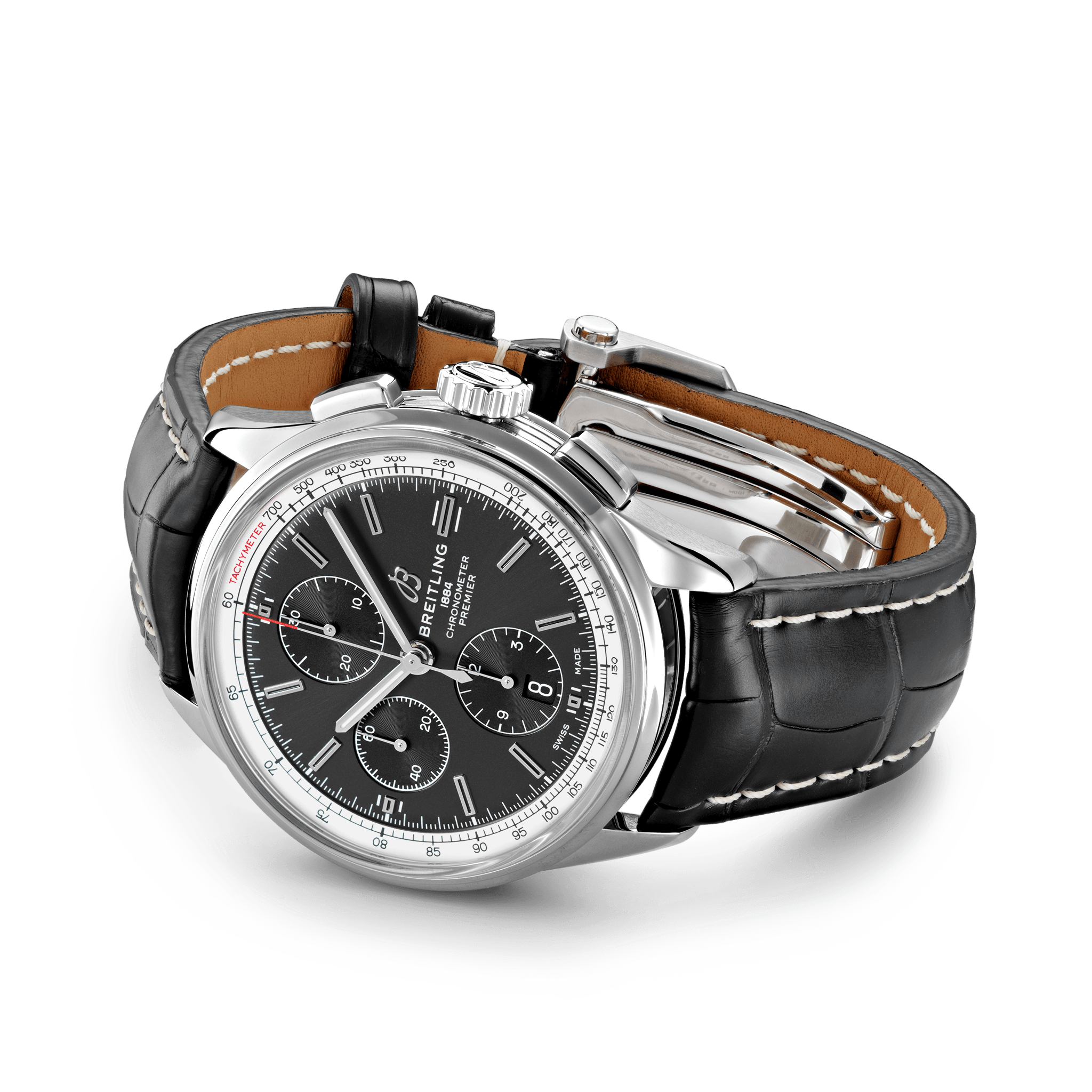 De Breitling Premier Chronograph 42 A13315351B1P1 is ontworpen door Willy Breitling in de jaren 40, was de Premier het allereerste horloge van het merk dat gewijd was aan stijl. Met elegante details en modern-retro accenten, voldoet deze herinterpretatie van de Premier aan de reputatie van zijn voorouders: het is “een horloge met een onberispelijke smaak”. De Premier toont een verscheidenheid aan elegante ontwerpdetails, zoals de groeven aan de zijkant van de kast of de rechthoekige chronograafdrukkers. De Premier Chronograph 42 is verkrijgbaar in roestvrij staal en heeft een zwarte of blauwe wijzerplaat. Deze Premier wordt aangeboden met een bijpassende stalen band of een keuze uit een band van krokodillenleer of nubuck kalfsleer die past bij zowel een gespsluiting als een vouwsluiting en wordt aangedreven door de Breitling Calibre 13, een COSC-gecertificeerde chronometer. Breitling Instruments for Professionals!