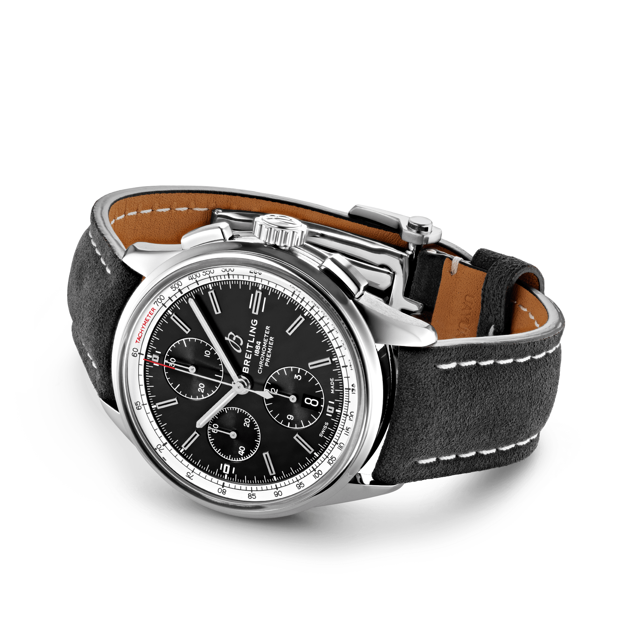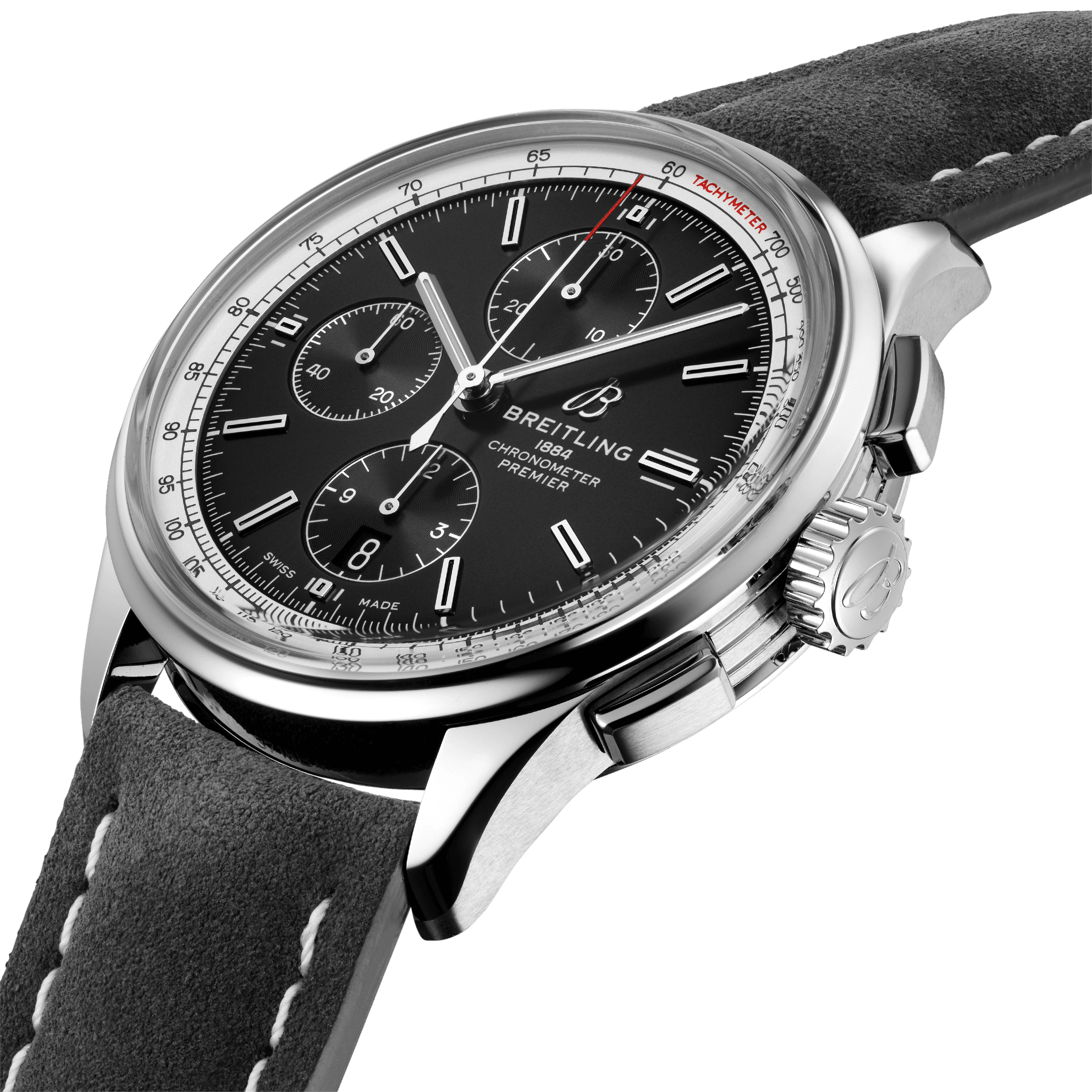 De Breitling Premier Chronograph 42 A13315351B1X1 is ontworpen door Willy Breitling in de jaren 40, was de Premier het allereerste horloge van het merk dat gewijd was aan stijl. Met elegante details en modern-retro accenten, voldoet deze herinterpretatie van de Premier aan de reputatie van zijn voorouders: het is “een horloge met een onberispelijke smaak”. De Premier toont een verscheidenheid aan elegante ontwerpdetails, zoals de groeven aan de zijkant van de kast of de rechthoekige chronograafdrukkers. De Premier Chronograph 42 is verkrijgbaar in roestvrij staal en heeft een zwarte of blauwe wijzerplaat. Deze Premier wordt aangeboden met een bijpassende stalen band of een keuze uit een band van krokodillenleer of nubuck kalfsleer die past bij zowel een gespsluiting als een vouwsluiting en wordt aangedreven door de Breitling Calibre 13, een COSC-gecertificeerde chronometer. Breitling Instruments for Professionals!