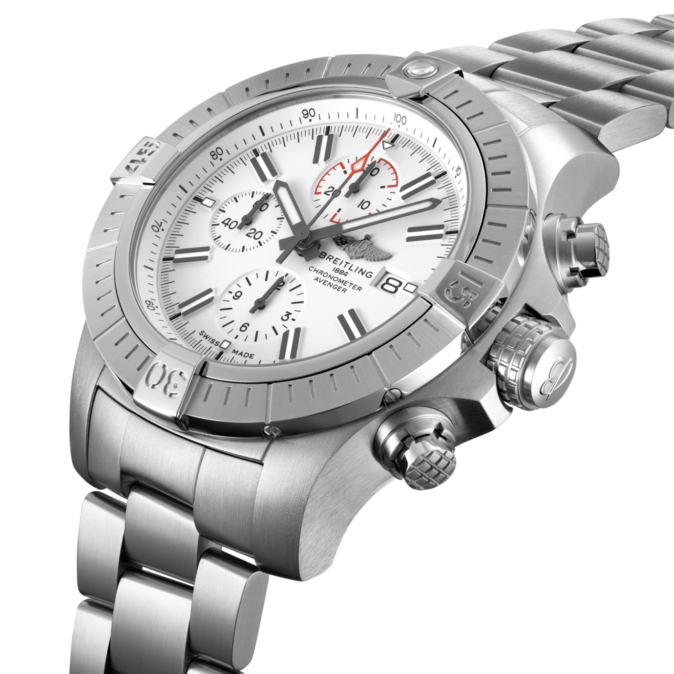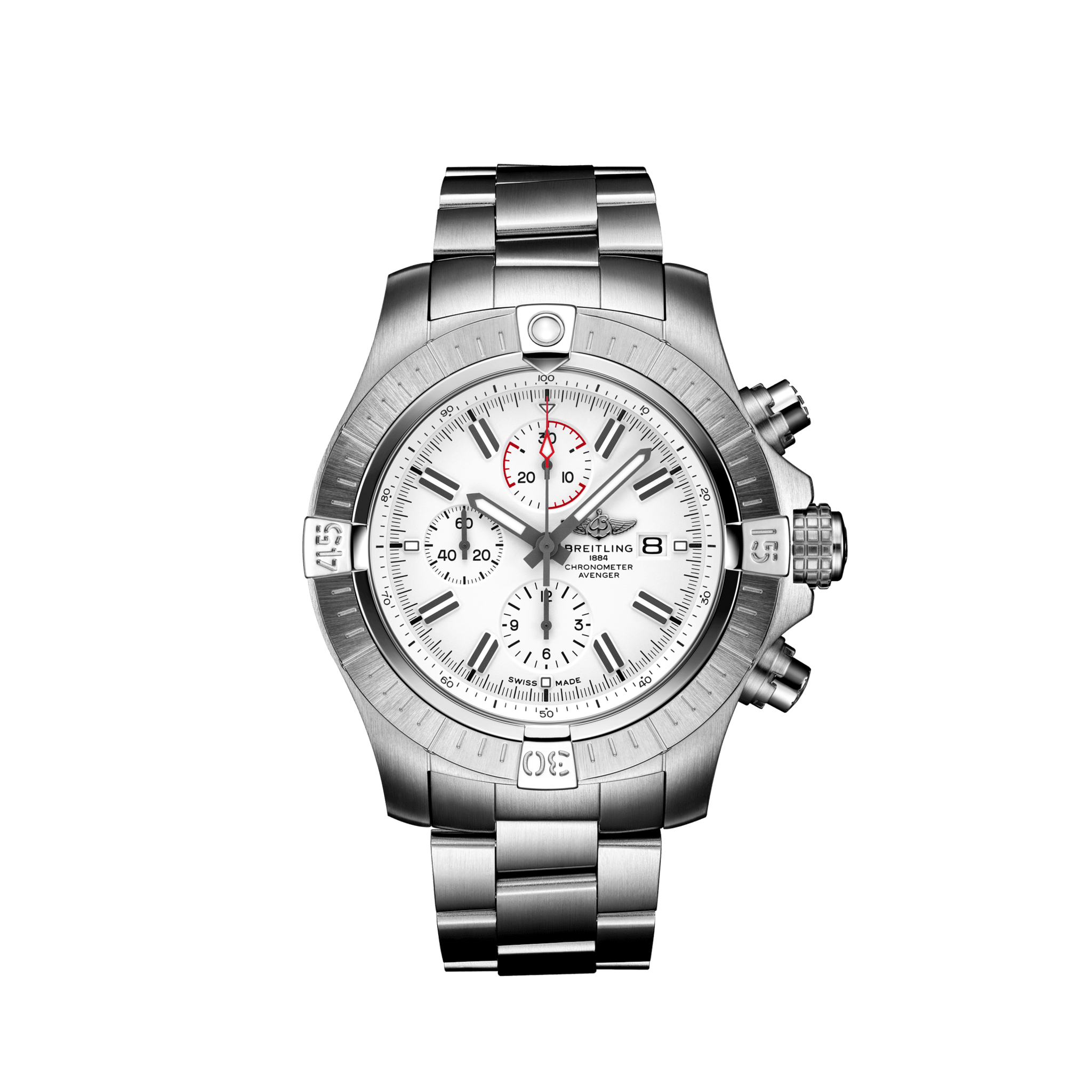 De Breitling Super Avenger Chronograph 48 A133751A1A1A1 is gedurfd, extreem robuust en schokbestendig, de Super Avenger Chronograph 48 maakt een grote “hier ben ik” -verklaring. Als een echte Breitling Avenger kan hij worden gebruikt met handschoenen aan en biedt hij ongeëvenaarde veiligheid en betrouwbaarheid aan elke avonturier in de lucht. De Super Avenger Chronograph 48 heeft een stevige, oversized roestvrijstalen kast van 48 mm, een zwarte wijzerplaat en een keuze uit een roestvrijstalen armband of een zwarte militaire leren band die past op een roestvrijstalen gesp of vouwsluiting. Dankzij de robuuste lunette en het speciale grippatroon op de kroon- en chronograaf drukkers kan de Super Avenger Chronograph 48 gemakkelijk met handschoenen worden bediend. Breitling Instruments for Professionals!