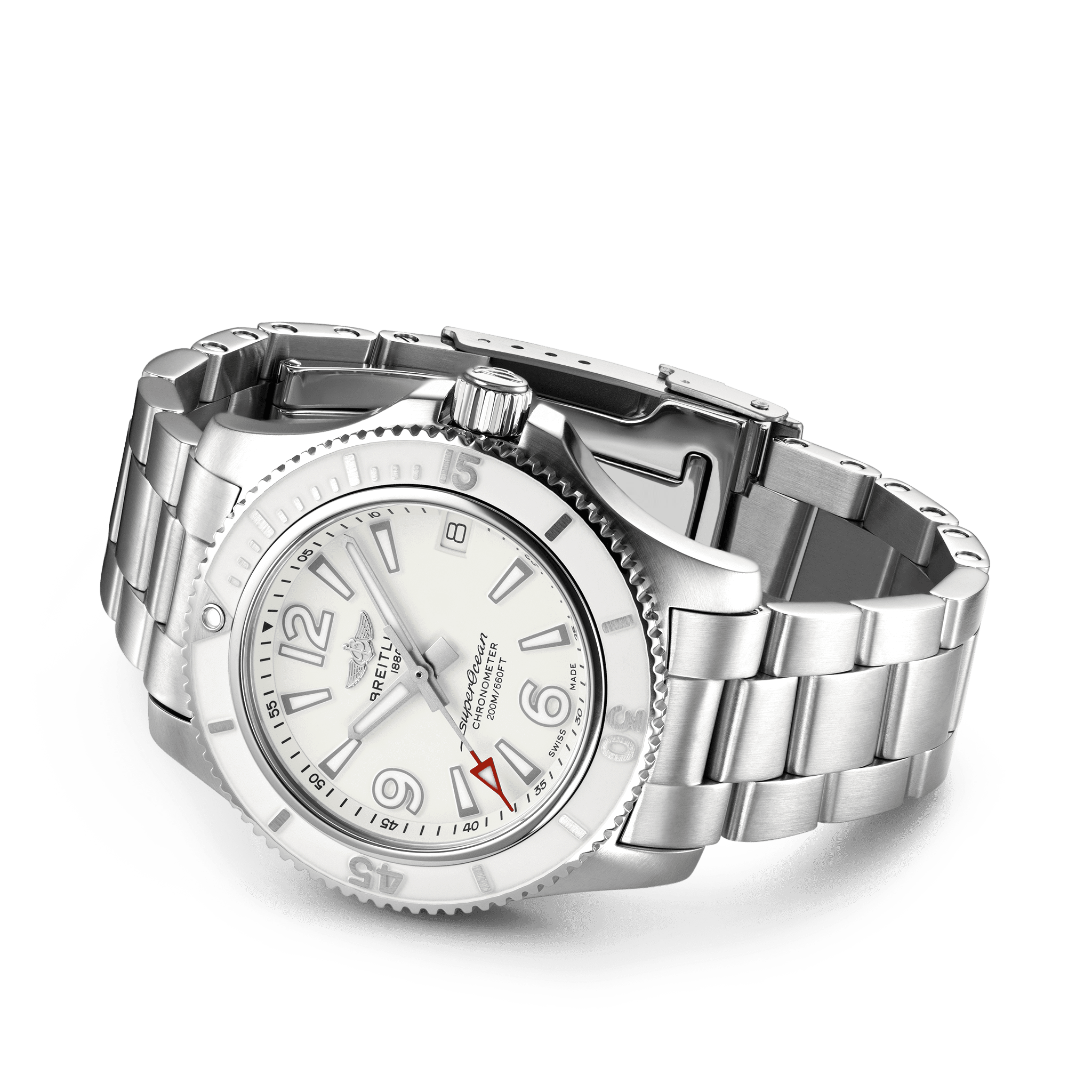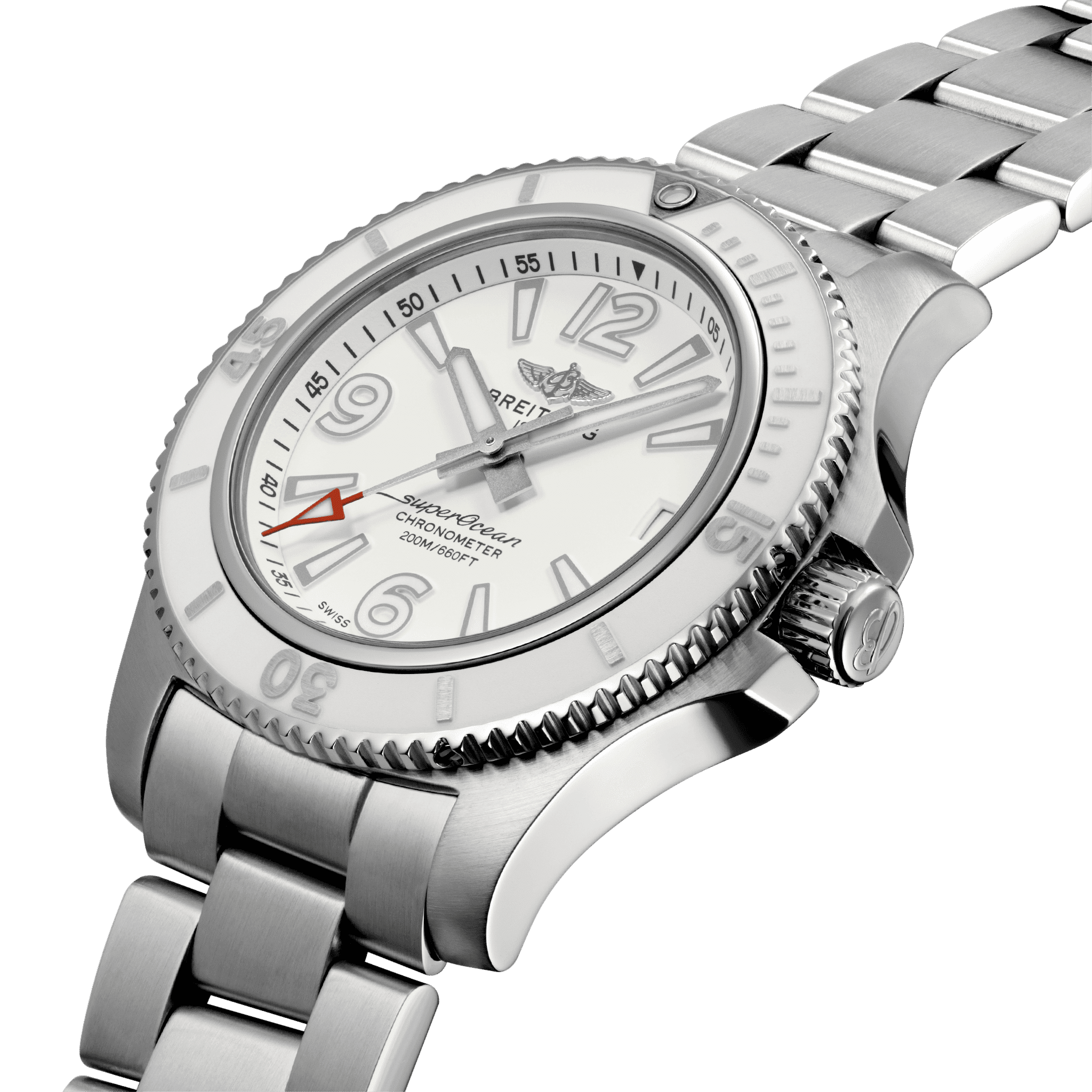 De Breitling Superocean Automatic 36 A17316D21A1A1 is sportief, fris en kleurrijk, de Superocean Automatic 36 is ontworpen voor vrouwen die op zoek zijn naar een horloge dat veelzijdigheid, prestatie en stijl combineert. De Superocean Automatic 36 heeft een stevige roestvrijstalen kast van 36 mm, een witte, lichtblauwe of oranje wijzerplaat en een keuze uit een roestvrijstalen armband, of een bijpassende witte, donkerblauwe of oranje rubberen band die past op een roestvrijstalen gesp. Niet alleen klaar voor de uitdagingen van de diepe zeeën (tot 20 bar / 200 meter), zal de frisse en sportieve Superocean Automatic 36 ook vrouwen aantrekken wiens avonturen iets dichter bij de kust liggen. Breitling Instruments for Professionals!