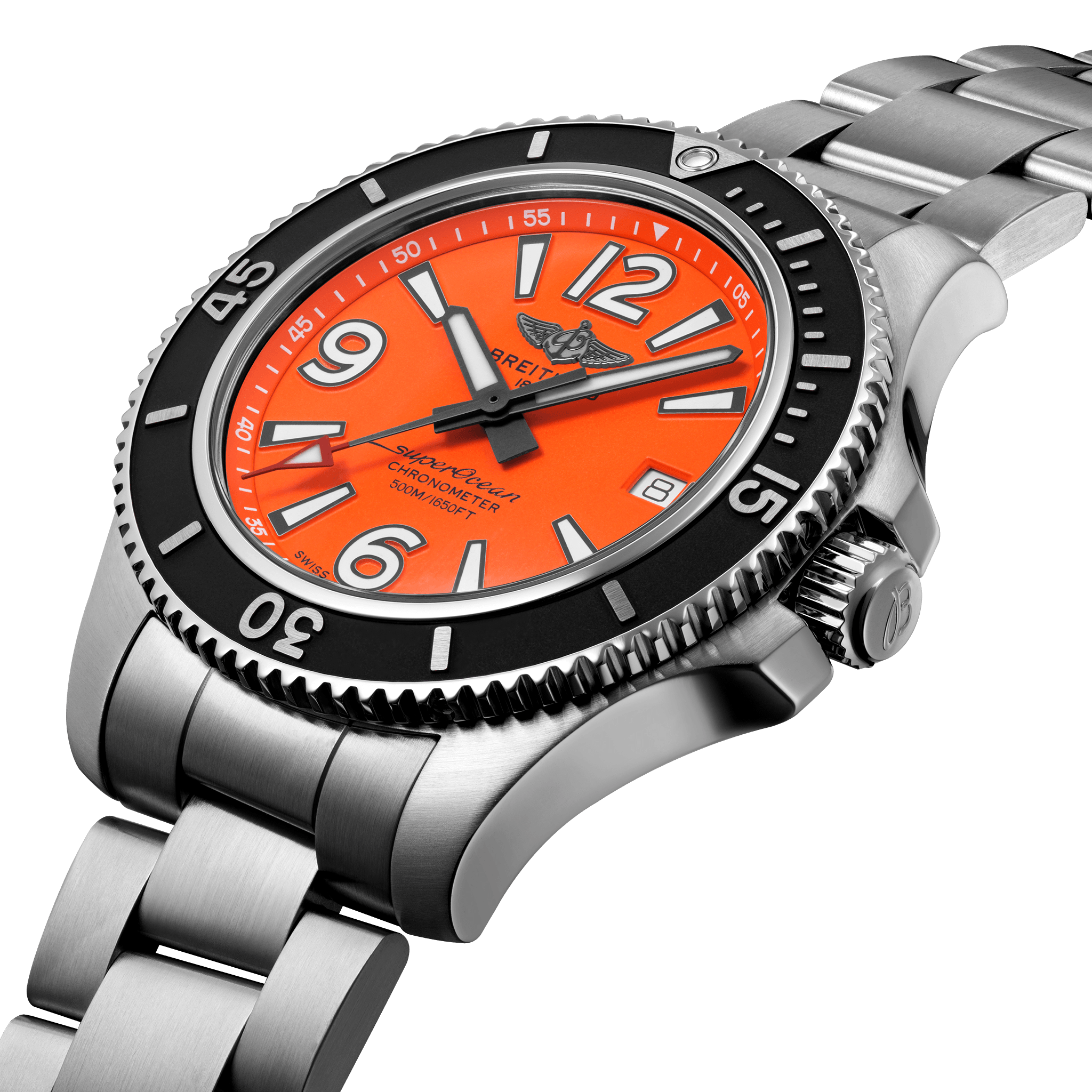 De Breitling Superocean Automatic 42 A17366D71O1A1 sportief, fris en kleurrijk, de Superocean Automatic 42 combineert prestatie met een eigentijdse stijl om om elke pols te passen. Hij kan elke uitdaging aan: ermee duiken, ermee surfen of ermee zwemmen! De Superocean Automatic 42 heeft een stevige 42 mm roestvrijstalen kast, kleurrijke wijzerplaten en een keuze uit een roestvrijstalen band, of een bijpassende rubberen band die past op een roestvrijstalen gesp of vouwsluiting. Niet alleen klaar voor de uitdagingen van de diepe zeeën (tot 50 bar / 500 meter), de frisse en sportieve Superocean Automatic 42 zal ook diegenen aantrekken wiens avonturen een beetje dichter bij de kust liggen. De Breitling Superocean Automatic 42 A17366D71O1A1 is ook leverbaar in andere kleurstellingen.