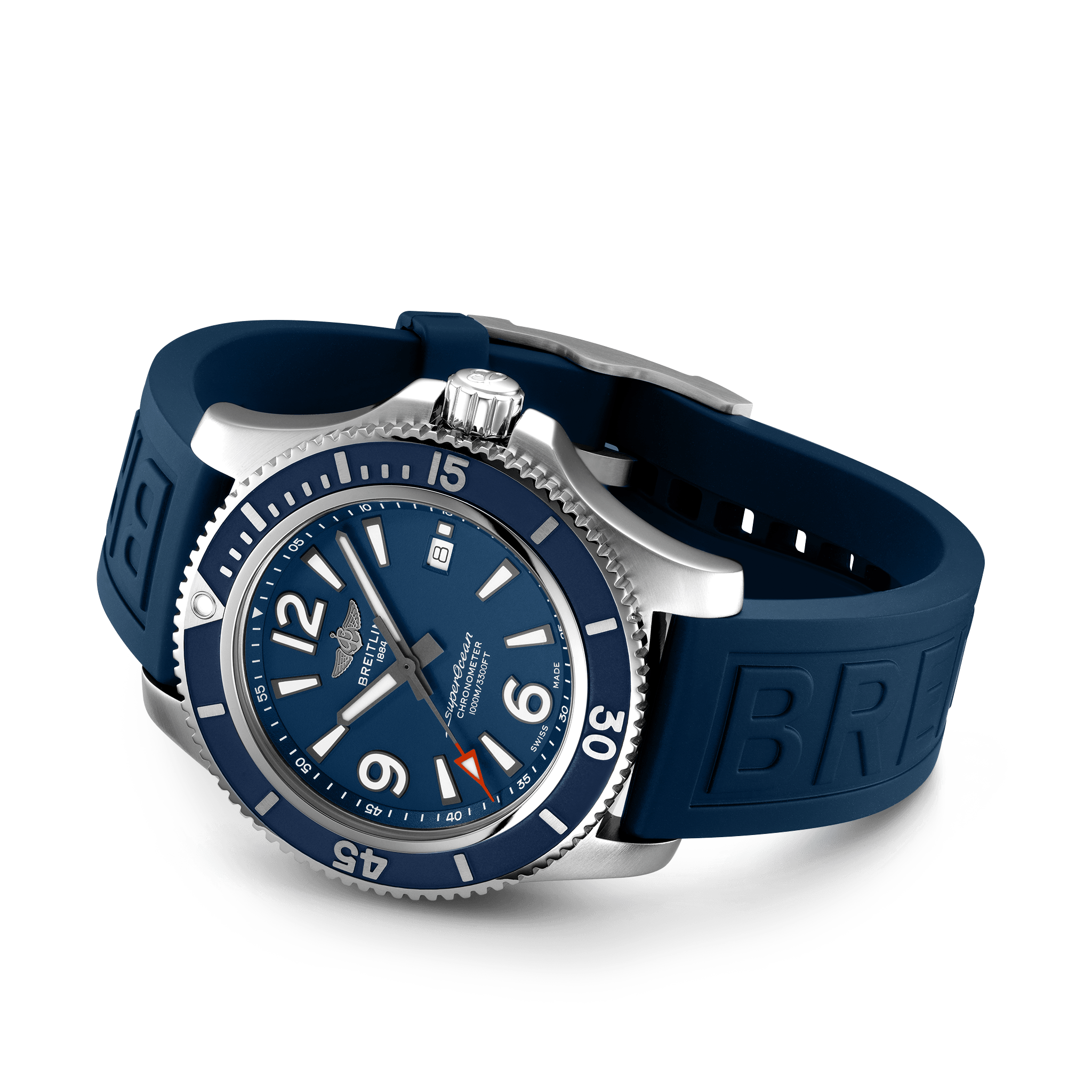 De Breitling Superocean Automatic 44 A17367D81C1S2 is sportief, fris en kleurrijk, de Superocean Automatic 44 is ontworpen voor mannen die op zoek zijn naar een sporthorloge dat serieuze prestaties combineert met een eigentijdse stijl. Hij kan elke uitdaging aan: ermee duiken, ermee surfen of ermee zwemmen! De Superocean Automatic 44 heeft een stevige roestvrijstalen kast van 44 mm, kleurrijke wijzerplaten en een keuze uit een roestvrijstalen band of een rubberen band in bijpassende kleur die past op een roestvrijstalen gesp of vouwsluiting. De frisse en sportieve Superocean Automatic 44 is niet alleen klaar voor de uitdagingen van de diepe zeeën (tot 100 bar / 1000 meter), maar zal ook degenen aantrekken wiens avonturen iets dichter bij de kust liggen. Breitling instruments for Professionals!