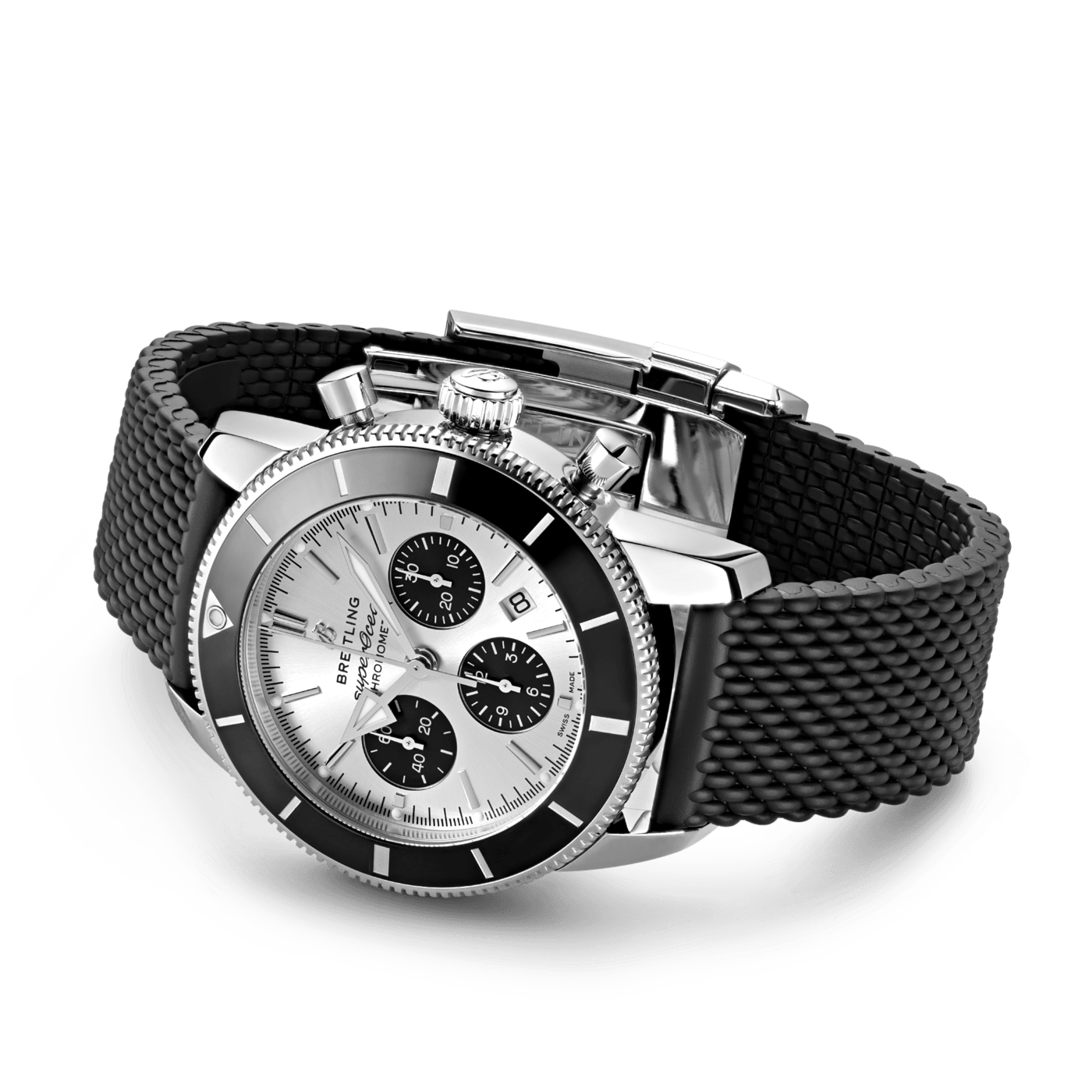 De Breitling Superocean Heritage B01 Chronograph 44 AB0162121G1S1 is geïnspireerd door de originele Superocean uit de jaren 50, combineert de Superocean Heritage iconische ontwerpkenmerken met een modern tintje. Sportief en elegant, de Superocean Heritage is een ware belichaming van stijl op zee. Met de iconische driehoekige wijzers en een unidirectionele bezel met een gepolijste keramische ring, is de Superocean Heritage een elegant uitziend duikershorloge. De Superocean Heritage B01 Chronograph 44 is verkrijgbaar in verschillende materialen, waaronder roestvrij staal en 18k roodgoud, en heeft een reeks zwarte, blauwe, zilveren of groene wijzerplaten. Deze Superocean Heritage wordt aangeboden met een bijpassende mesh-armband of een rubberen band in “mesh-stijl” die past op een vouwsluiting en wordt aangedreven door de in-house Breitling Manufacture Calibre 01, een COSC-gecertificeerde chronometer. Breitling Instruments for Professionals!