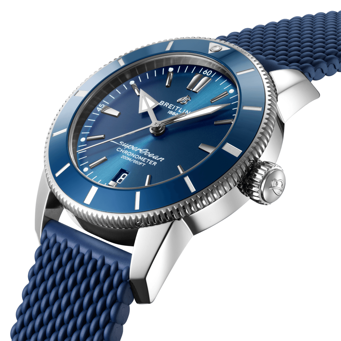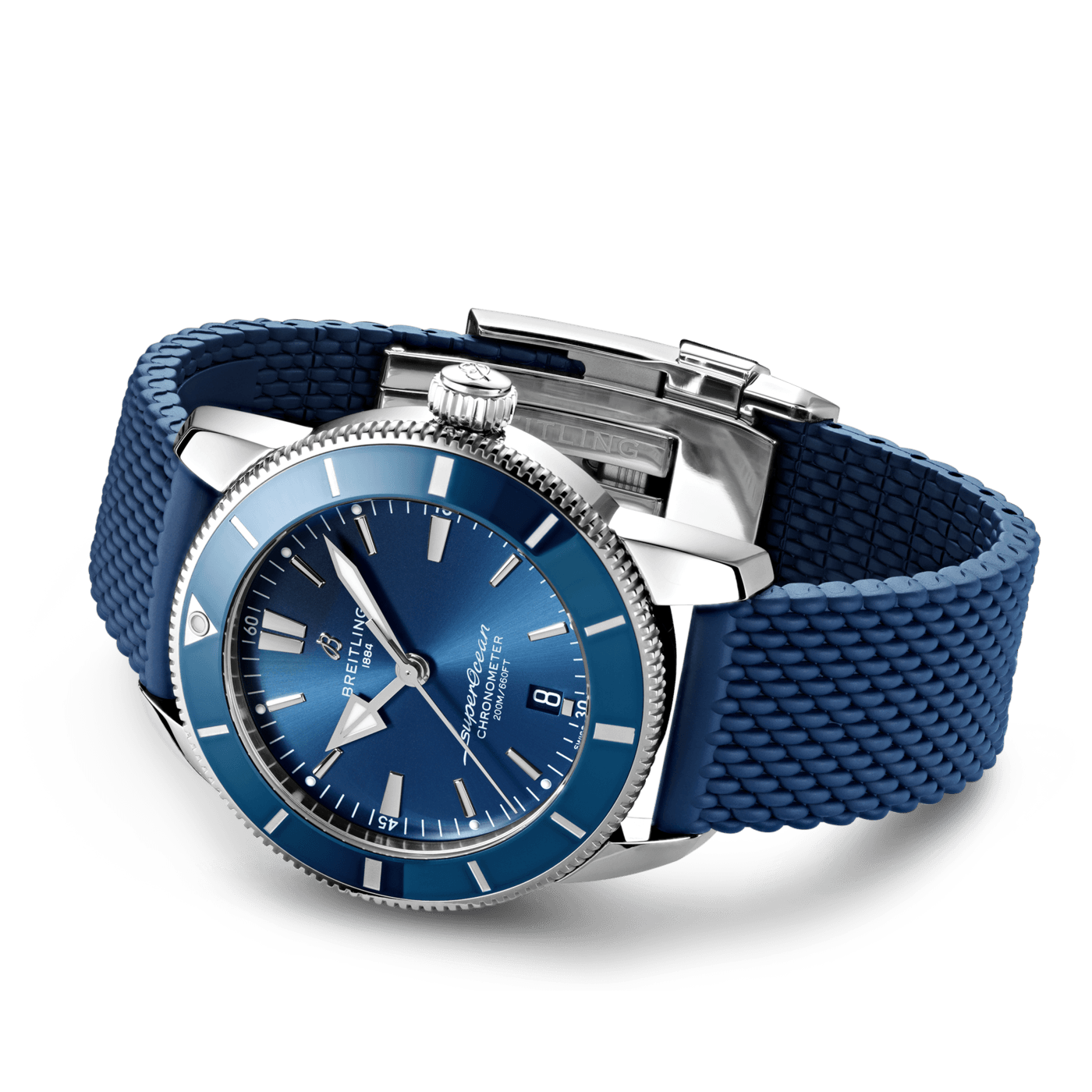 De Breitling Superocean Heritage B20 Automatic 44 AB2030161C1S1 is geïnspireerd door de originele Superocean uit de jaren 50, combineert de Superocean Heritage iconische ontwerpkenmerken met een modern tintje. Sportief en elegant, de Superocean Heritage is een ware belichaming van stijl op zee. Met de iconische driehoekige wijzers en een unidirectionele bezel met een gepolijste keramische ring, is de Superocean Heritage een elegant uitziend duikershorloge. Verkrijgbaar in verschillende maten en materialen, waaronder roestvrij staal en 18k rood goud, de Superocean Heritage B20 Automatic heeft een reeks zwarte of blauwe wijzerplaten. Deze Superocean Heritage wordt aangeboden met een bijpassende mesh-band of een rubberen band in “mesh-stijl” die past op een vouwsluiting en wordt aangedreven door de Breitling Manufacture Calibre B20, een COSC-gecertificeerde chronometer op basis van de Tudor Calibre MT5612. Breitling Instruments for Professionals!