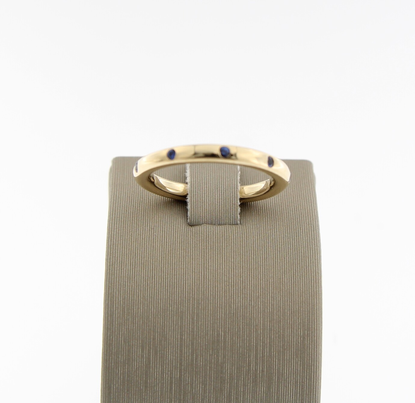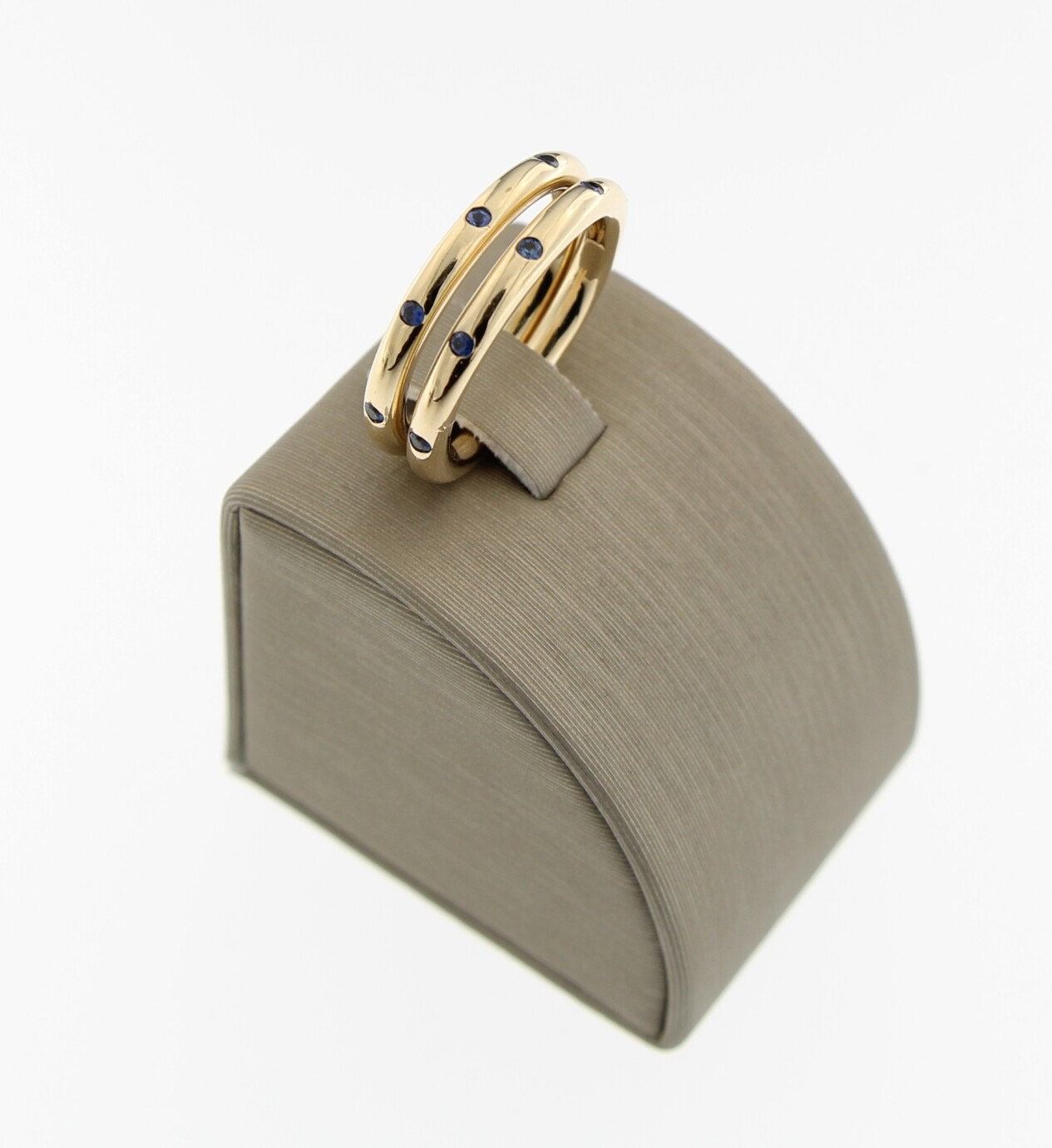 BRON, 14 k geel gouden stax ring met Ceylon Saffier
