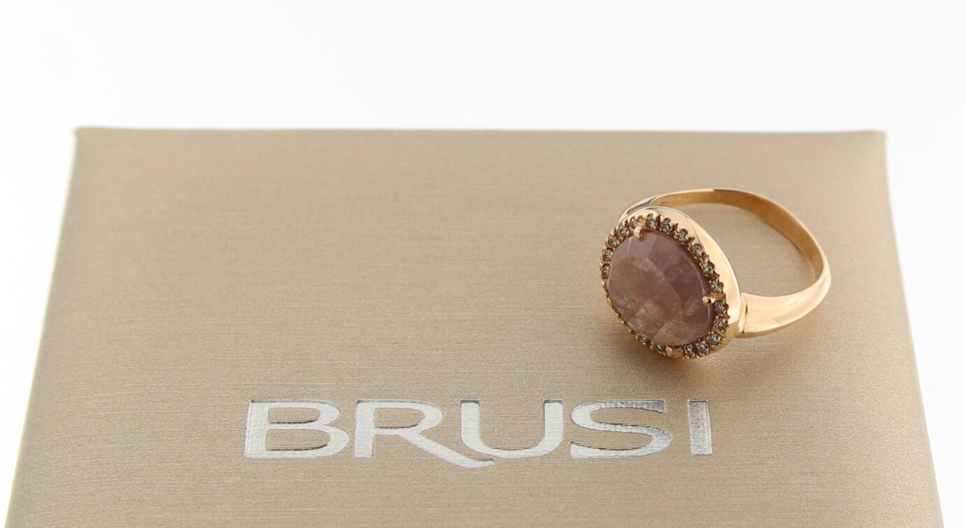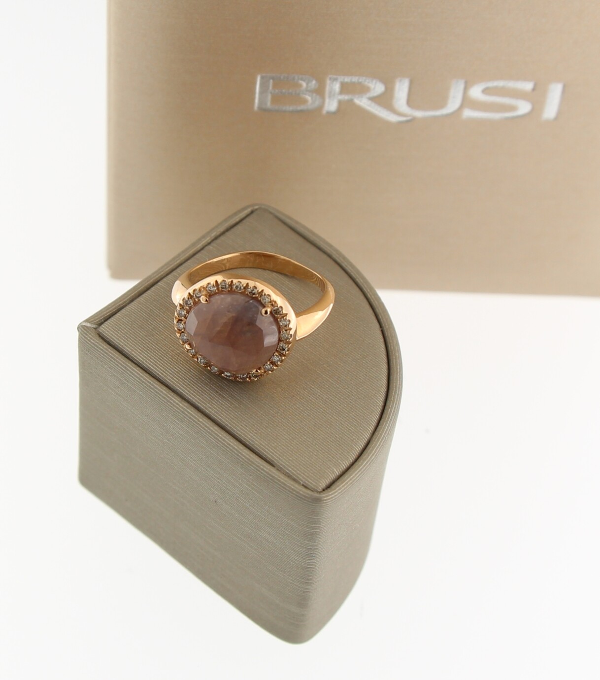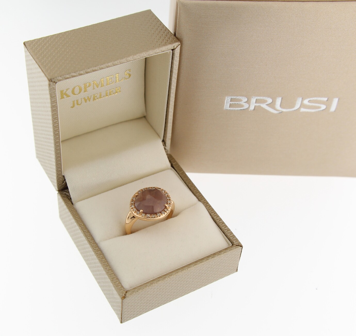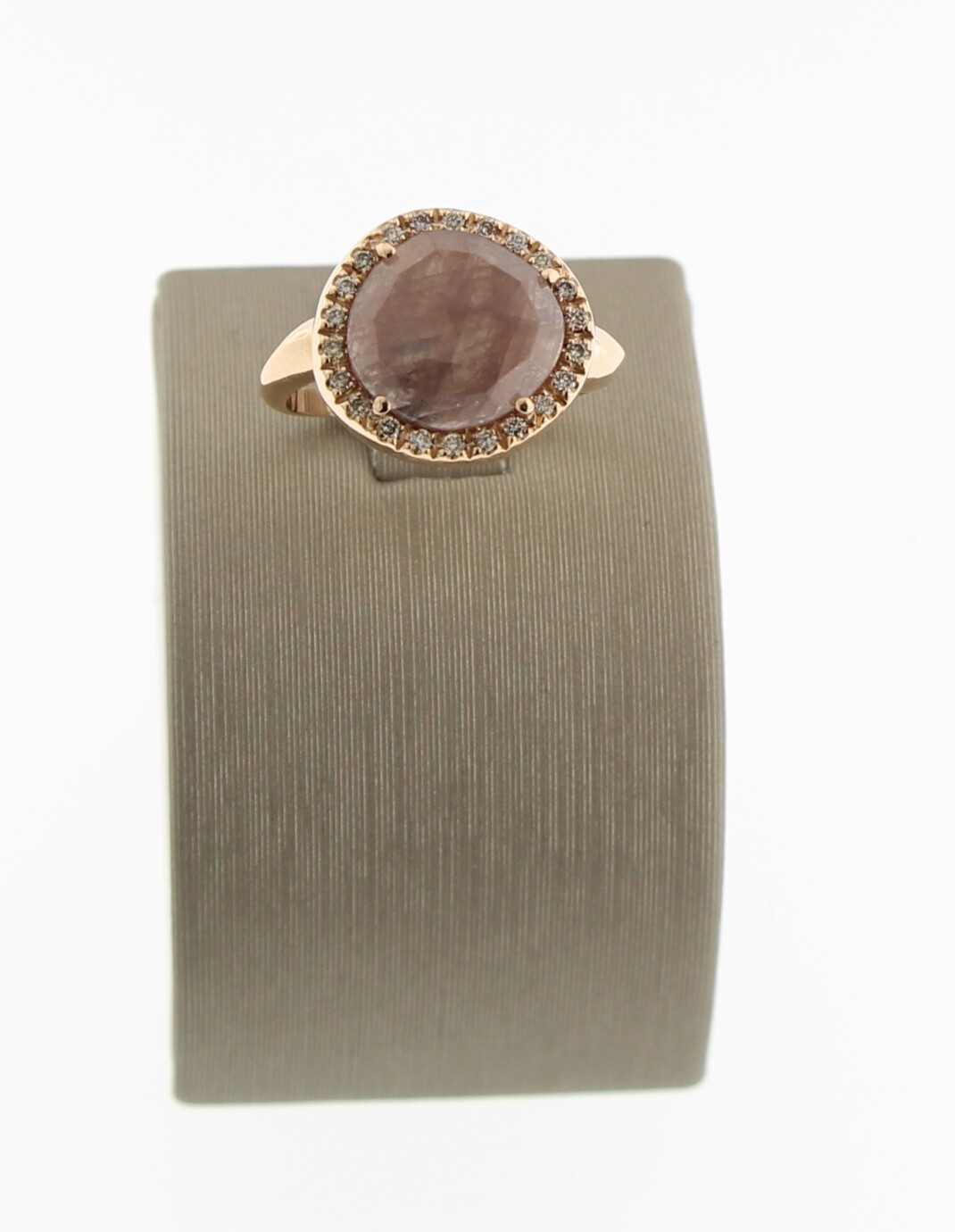 Brusi rosegouden ring, Bora Bora collectie, rose saffier en champagne diamant