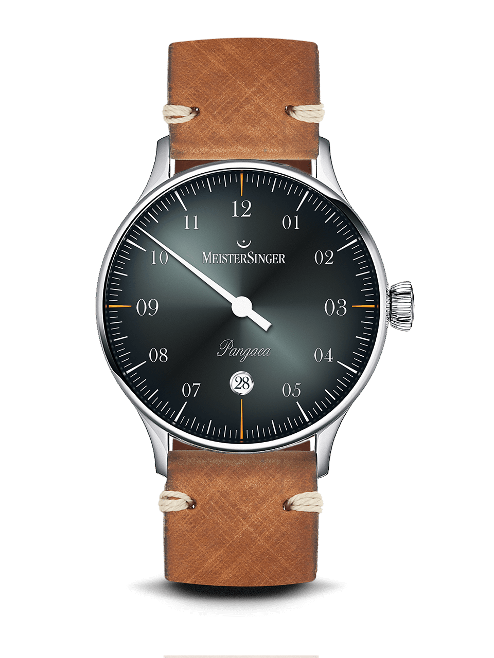 De Meistersinger Pangaea Date PM907D. MeisterSinger maakt horloges voor mensen die precies weten wat voor hen belangrijk is. Het enige wat ze nodig hebben is een lange, enkele wijzer die zowel de uren als de minuten weergeeft; seconden zijn niet belangrijk voor hen, hoewel de huidige datum een heel andere zaak is.